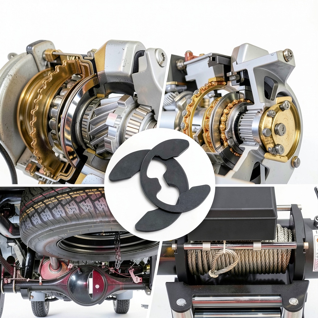 E clips, or external retaining rings, are fasteners designed to hold components like bearings and gears onto shafts, preventing them from loosening due to vibration or rapid movement in industrial and mechanical systems.
