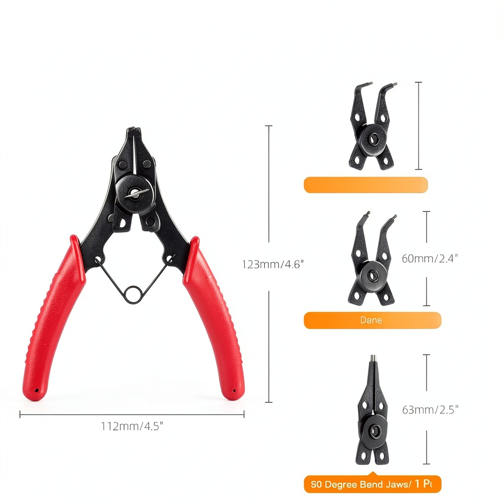 - Features a 4-in-1 snap ring plier with interchangeable jaws for internal and external rings