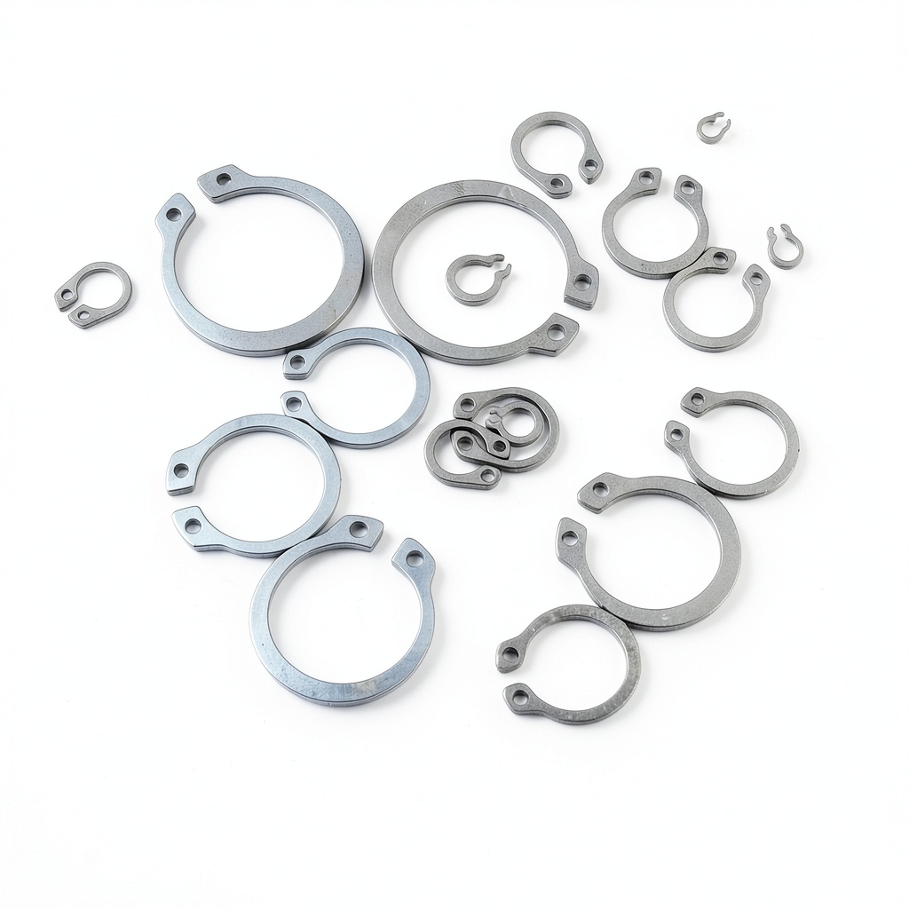Simply snap them into place on grooved shafts, pins, or studs to secure bearings or other components, ensuring a tight fit without special tools.